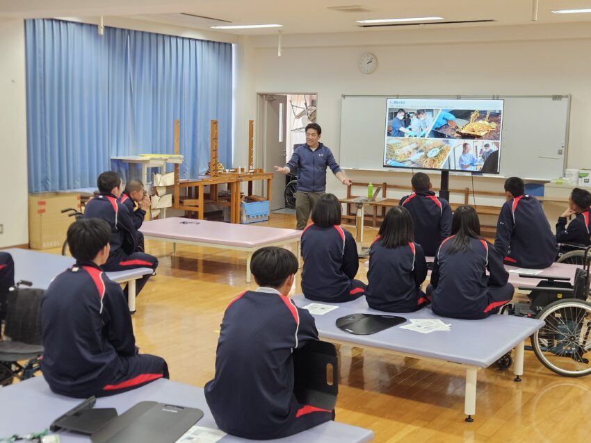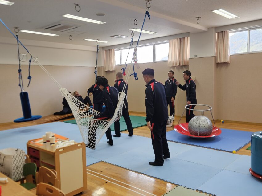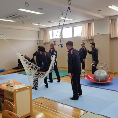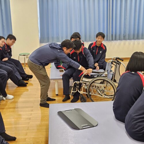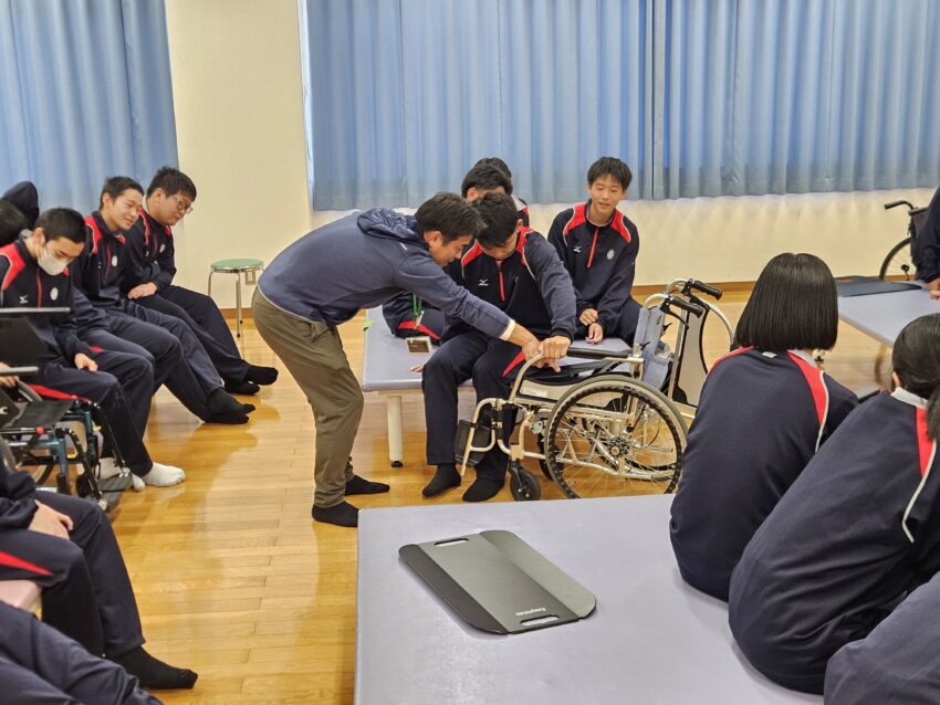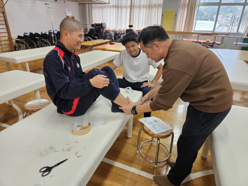 報告 2025.12.10 12/8(月) 尽誠学園高等学校2年生が来学 12/8(月)香川県の尽誠学園高等学校アスリートコースの2年生59名が来学し、職業の紹介と体験実習を実施いたしました。 各専攻では、キネシオテープの巻き方や車椅子の操作・移乗動作の練習、小児との関わり方など、楽しみながら多様な体験をしていただきました。 今後の進路を選択するうえで参考になりましたら幸いです。 尽誠学園高等学校アスリートコース2年生の皆さん、ありがとうございました。
