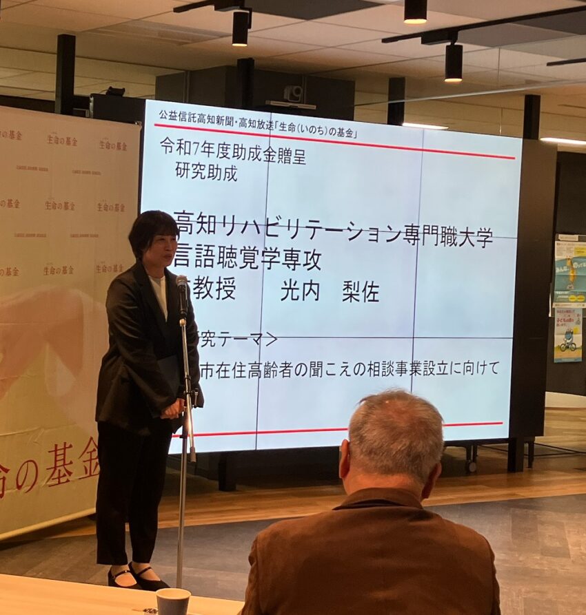 この度、令和7年度の公益信託高知新聞・高知放送「生命(いのち)の基金」に言語聴覚学専攻の光内梨佐先生の研究が採択されました。